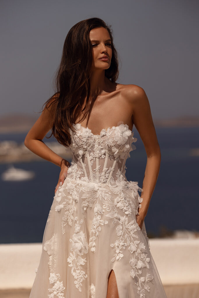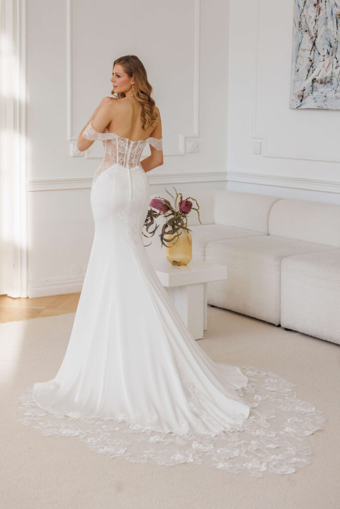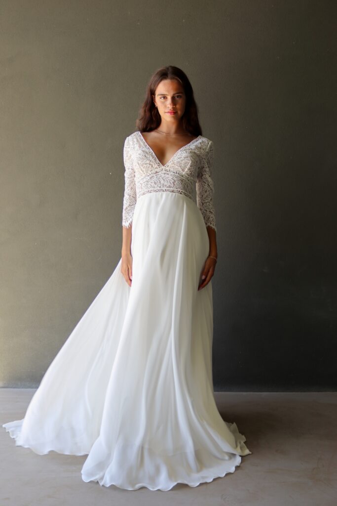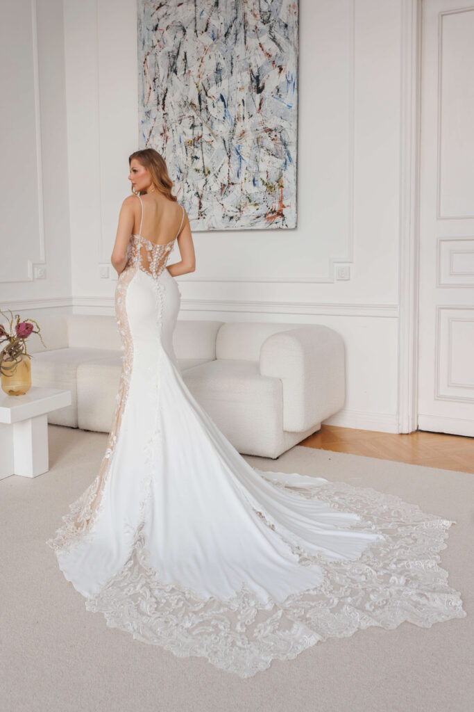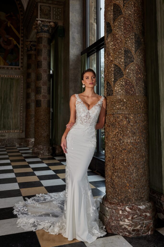 Linee pulite, pizzi ricercati, volumi leggeri e tagli iconici definiscono uno stile raffinato e senza tempo.